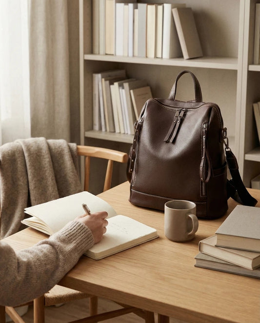 To maintain your backpack's quality, clean it gently with a soft, damp cloth. Avoid prolonged exposure to direct sunlight and moisture to keep the leather in its best condition.