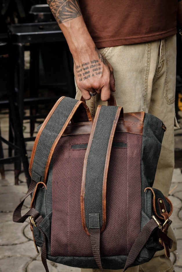 Men's Vintage Leather Laptop Backpack – Emerald Green Canvas